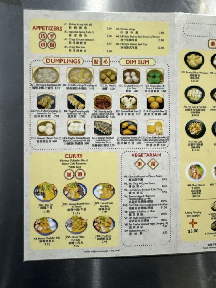Choice of Noodle 麵類選項 (Egg Noodle 蛋面, Broad Egg Noodle 寬蛋麵, Broad Rice Noodle 河粉, Mei Fun 米粉, Udon 烏冬, Ramen 拉麵 +$)